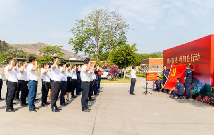 現(xiàn)場(chǎng)參觀結(jié)束后,舉行“重溫入黨誓詞”活動(dòng),全體黨員鏗鏘有力的宣誓聲響徹全場(chǎng),大家以昂揚(yáng)的姿態(tài)表達(dá)著為黨的事業(yè)奮斗終身的堅(jiān)定信念,在莊嚴(yán)肅穆的氛圍中,再一次接受心靈的洗禮。
