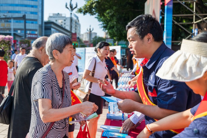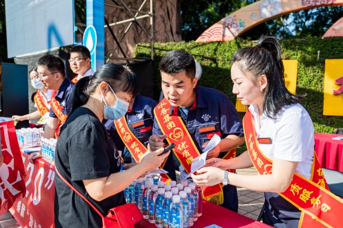 上午8時,設(shè)置在竹湖園廣場的“520”便民服務(wù)點,熱鬧不已,炳草崗水廠、怡康飲用水有限公司共產(chǎn)黨員服務(wù)隊、青年志愿者服務(wù)隊的隊員們,禮貌熱情地向群眾介紹集團(tuán)公司“520”服務(wù)品牌建設(shè)理念,發(fā)放“520”民生服務(wù)承諾、現(xiàn)行水價政策、用水節(jié)水常識等宣傳資料,對群眾關(guān)心的水質(zhì)、水壓、抄表、收費等問題進(jìn)行耐心細(xì)致的逐一解答。